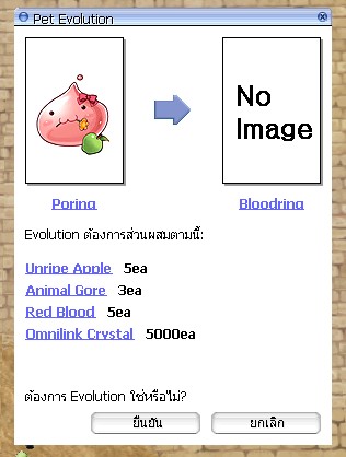 When we select the Evolution - Bloodring command, a new window will pop up to show the materials required for evolving our pet.