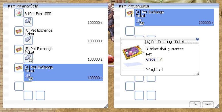 Here, we'll try evolving into a Bloodring. The prerequisite for pet evolution is that the pet must reach the "Intimate" affection level first before you can choose to evolve. To reach Intimacy quickly, besides caring for and feeding the pet over a certain period, we also have items designed to increase pet intimacy available in the shop for 100,000 Zeny and 2 C Pet Fragments.